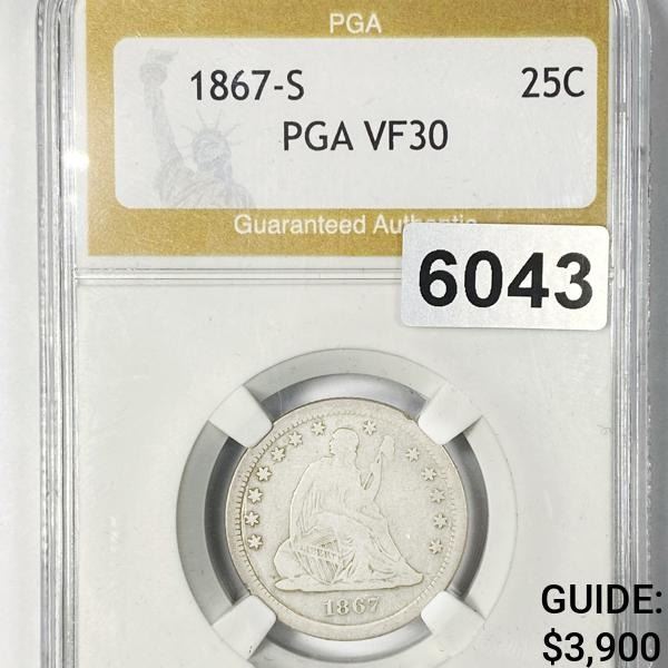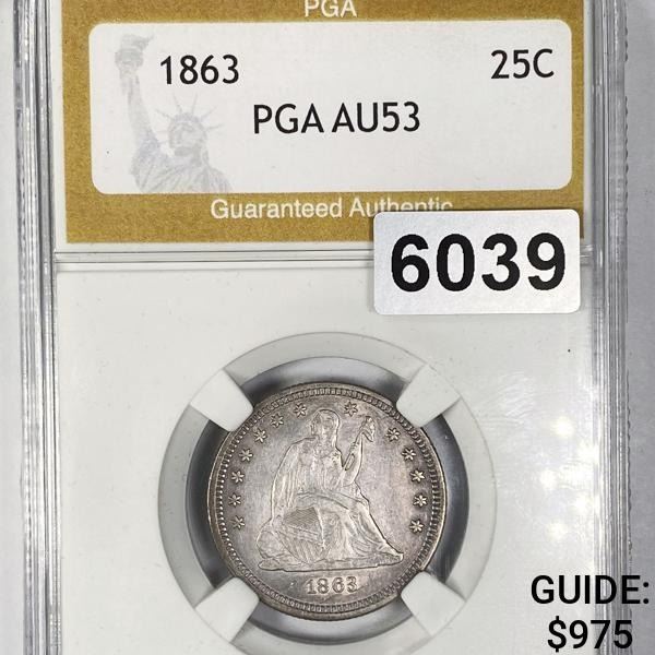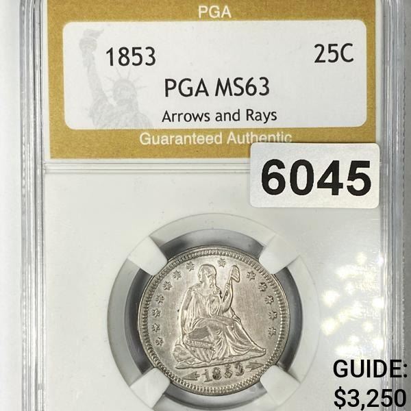 1853 Arws & Rays Seated Liberty Quarter PGA -