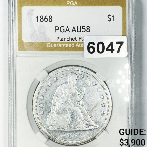 1868 Seated Liberty Dollar PGA - AU58 Plncht Flaw