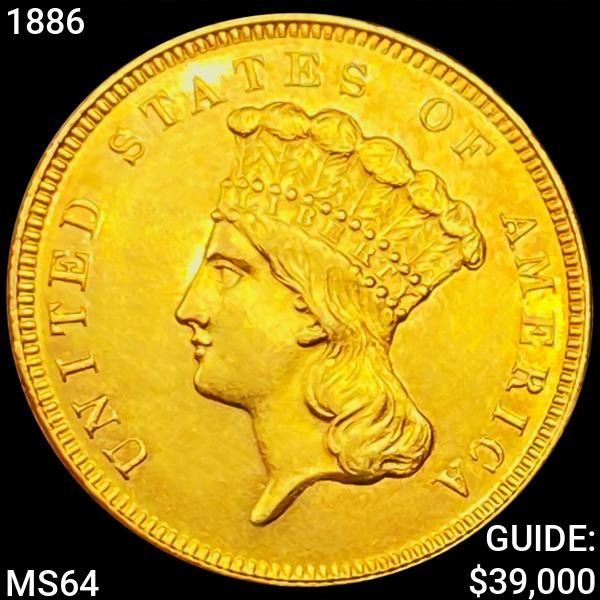 1886 $3 Gold Piece CHOICE BU
