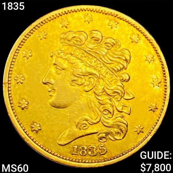 1835 $5 Gold Half Eagle UNCIRCULATED
