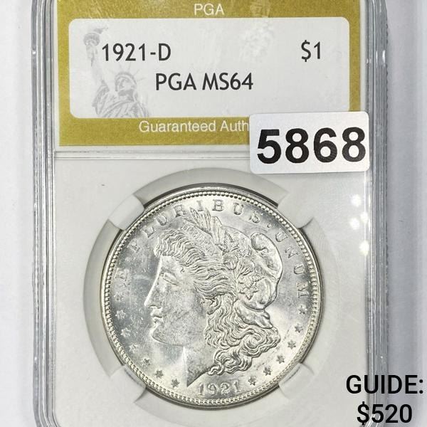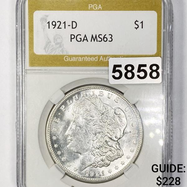 1921-D Morgan Silver Dollar PGA - MS63