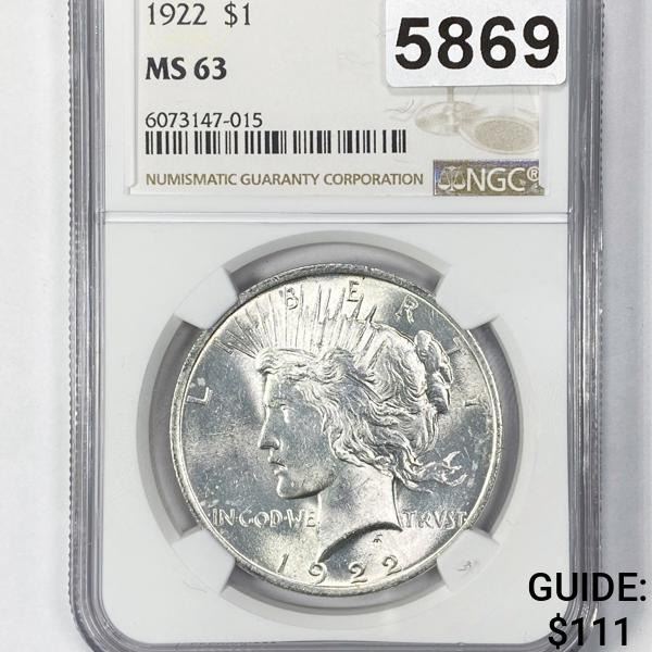 1922 Silver Peace Dollar NGC - MS63
