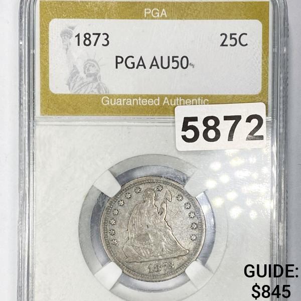 1873 Seated Liberty Quarter PGA - AU50