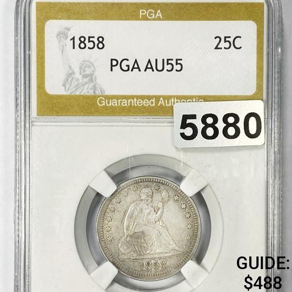 1858 Seated Liberty Quarter PGA - AU55