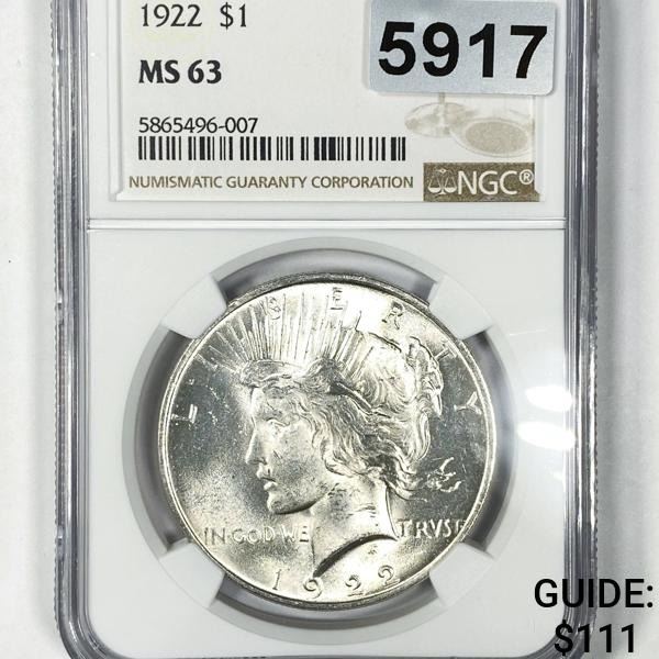 1922 Silver Peace Dollar NGC - MS63