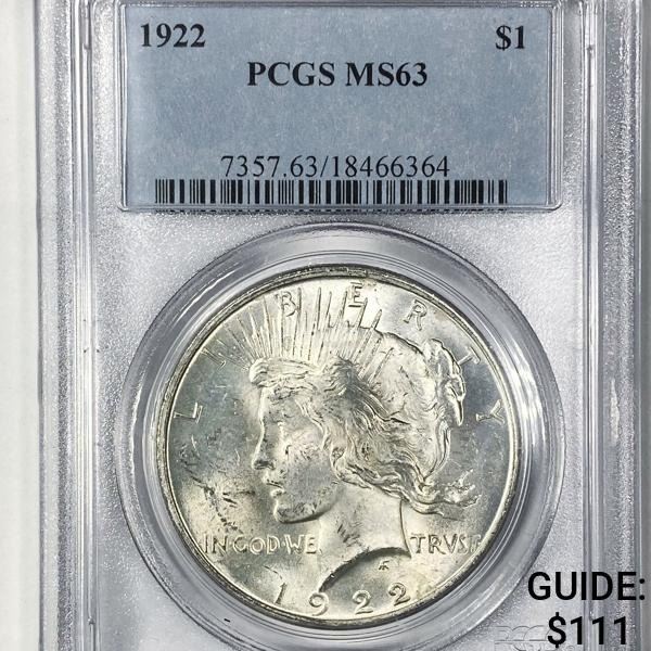 1922 Silver Peace Dollar PCGS - MS63