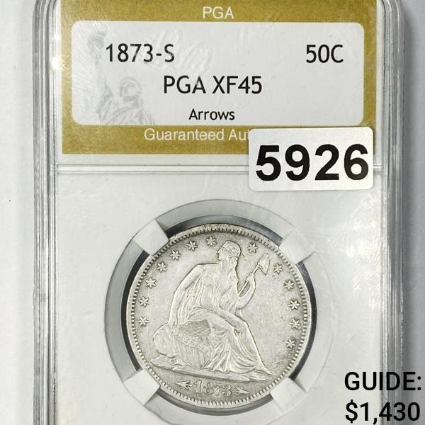 1873-S Arrows Seated Liberty Half Dollar PGA -