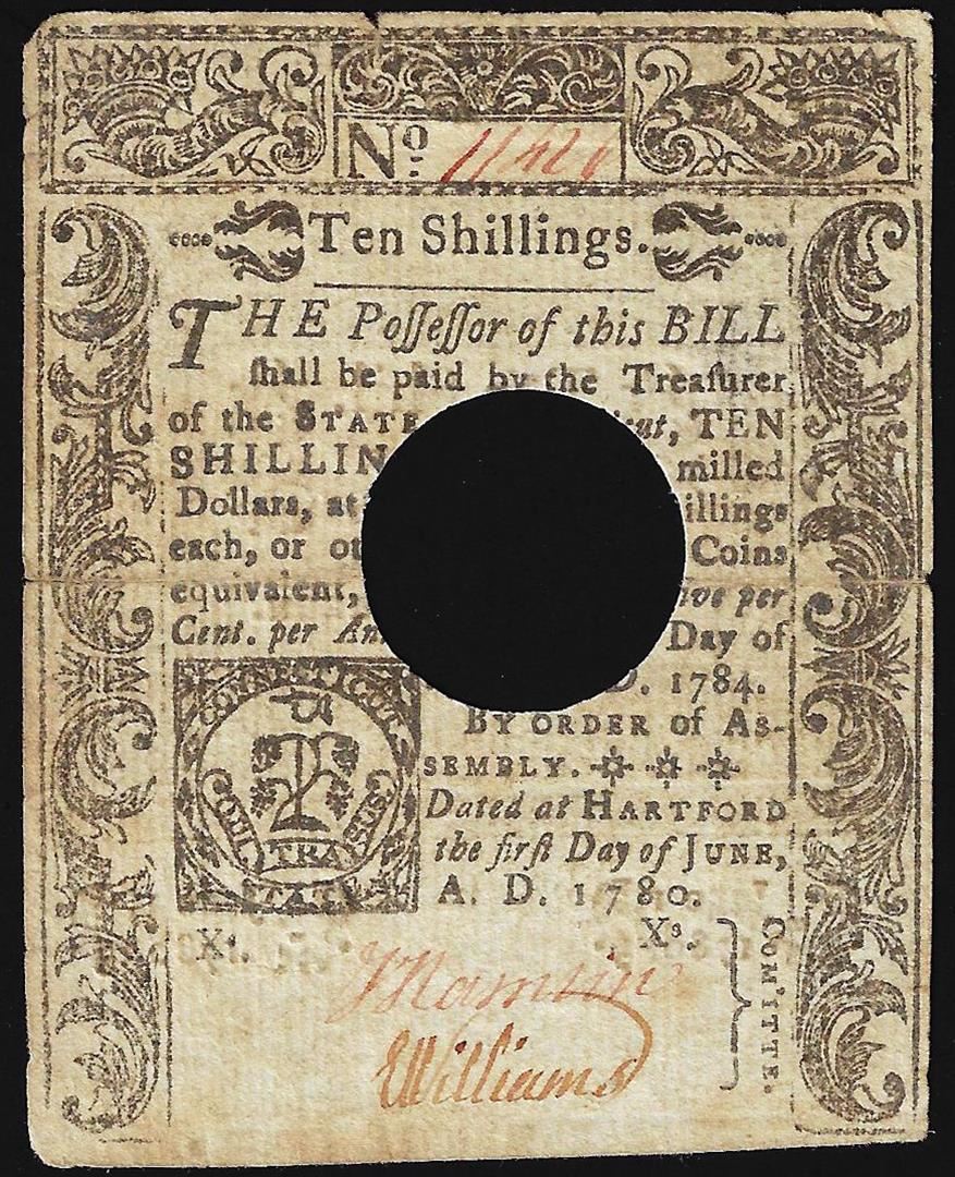 One June 5, 1780 Connecticut Ten Shillings Colonial Currency Note.