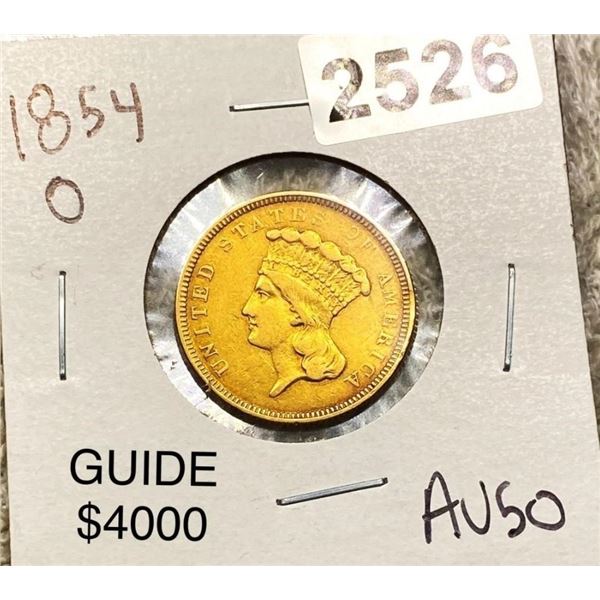 1854-O $3 Gold Piece ABOUT UNCIRCULATED