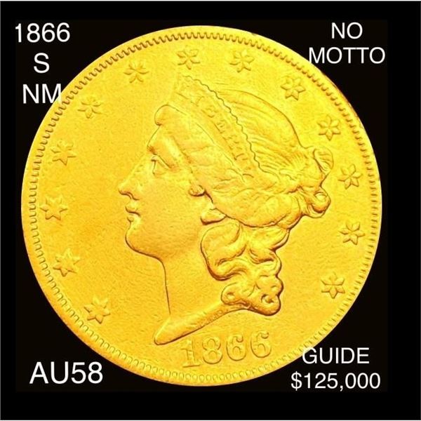 1866-S $20 Gold Double Eagle CHOICE AU NO MOTTO
