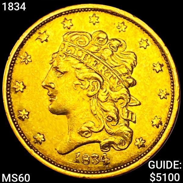1834 $5 Gold Half Eagle UNCIRCULATED