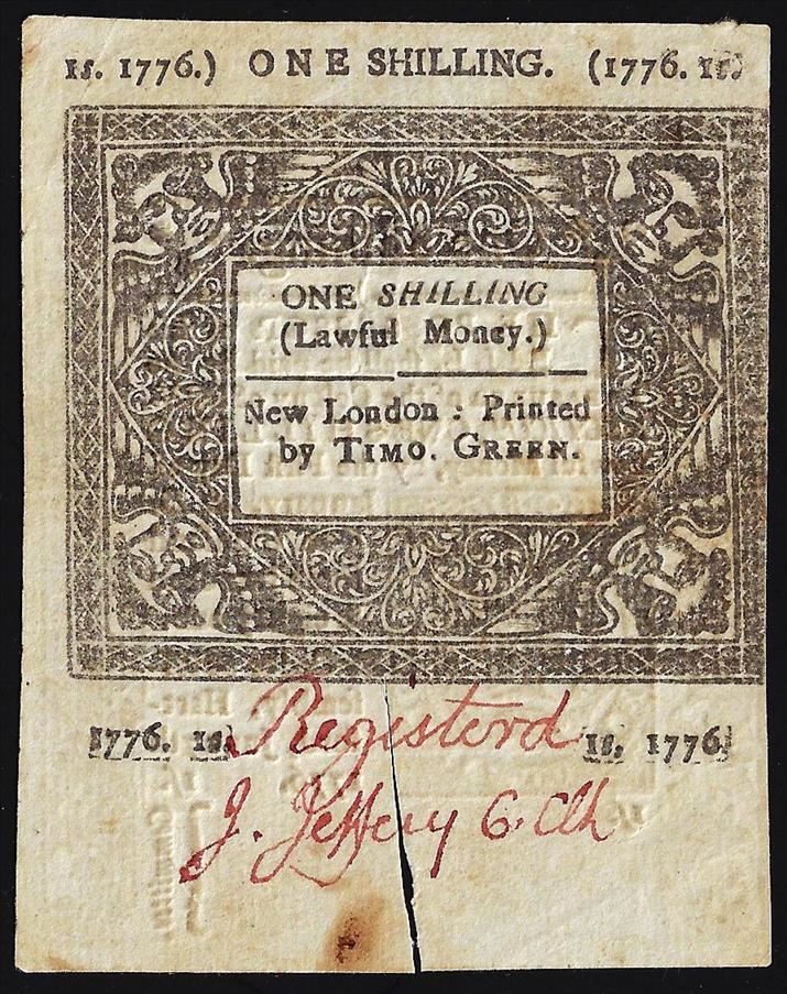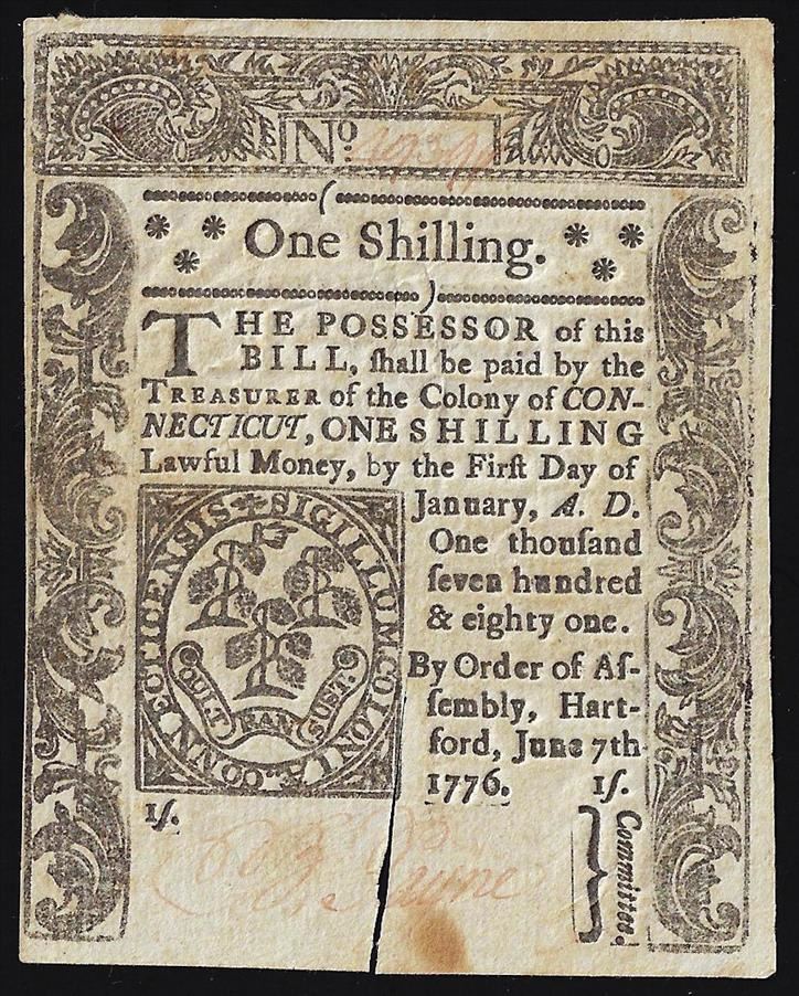 June 7, 1776 One Shilling Connecticut Colonial Currency Note