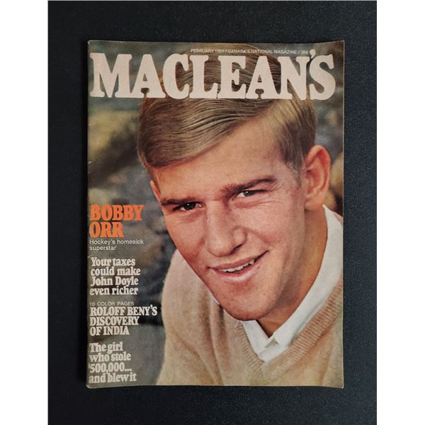 MacLean's Magazine from February 1969, featuring Boston Bruin star Bobby Orr. Magazine is in EX condition, complete, no tears.