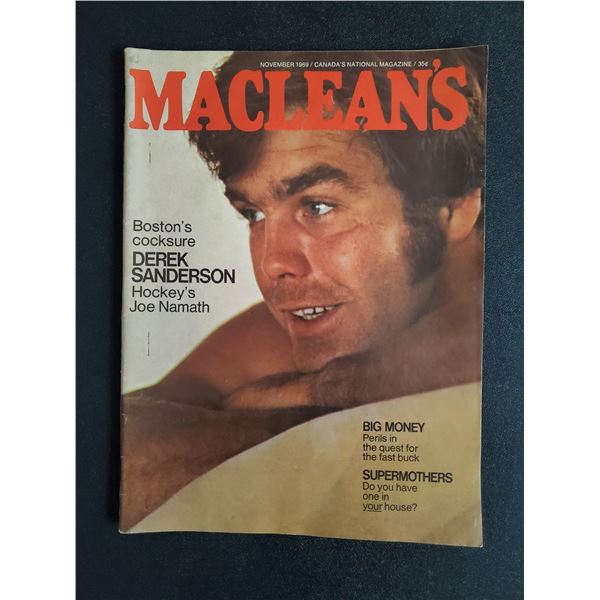 MacLean's Magazine from November 1969 featuring Boston Bruins star Derek Sanderson, "Hockey's Joe Namath" according to the magazin...
