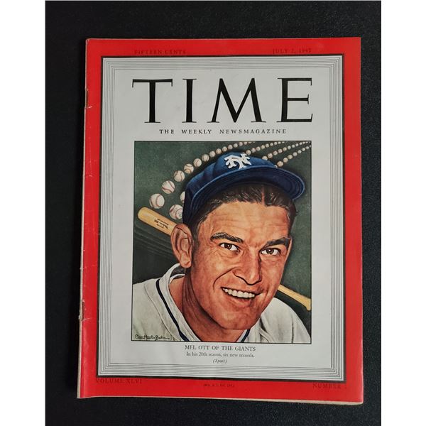 Complete Time Magazine, July 2, 1945, with Hall of Famer Mel Ott on the cover in a gorgeous painted image from Ernest Hamlin Baker. In Excellent shap