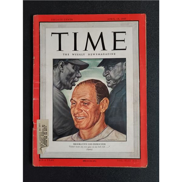 Complete Time Magazine from April 14, 1947, featuring baseball Hall of Famer Leo "the Lip" Durocher on the cover in another great Ernest H...