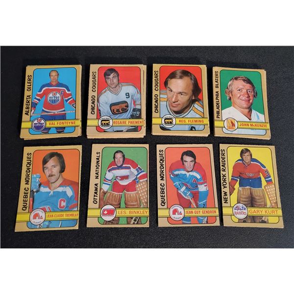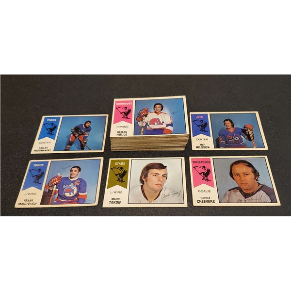 Here's a near set of 1974-75 O-Pee-Chee WHA cards, missing only five cards (1, 20, 50, 57 64). Set grades GD to EX (mostly VG, VG/EX), some bet...