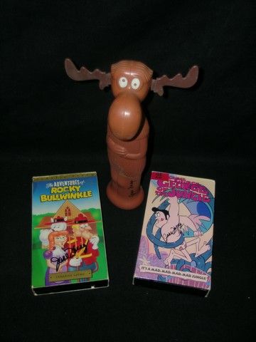 This is a great signed lot from legendary voice actress June Foray, including a signed "Bullwinkle" bath toy and two signed VHS tapes "The Adventures of Bullwinkle" and "George of the Jungle."