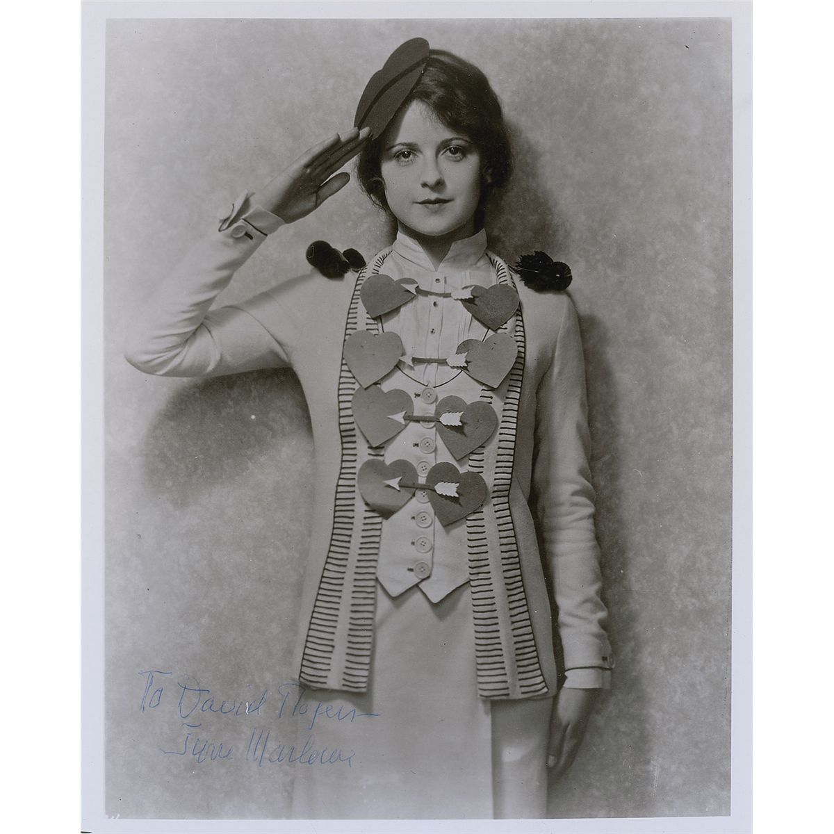 Glossy 8 x 10 photo of Marlowe in costume, signed and inscribed in blue ballpoint, “To David Rogers, June Marlowe.” In fine condition.