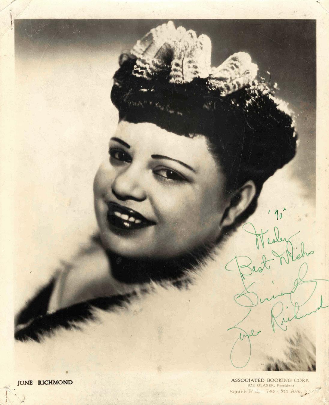 June Richmond Signed 8'' x 10'' Photo -- Signed in Green Ink, ''To Wesley Best Wishes Sincerely June Richmond'' -- Wear, Else Good Condition