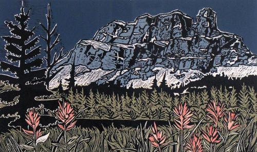 CASTLE MOUNTAIN; 2002 - Colour woodcut - on paper - ; Ed. #43/70<Br>9.5 ins. X 16 ins.
