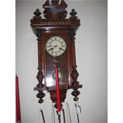 Attractive hanging Vienna clock original black walnut case and movement... marvelous addition to any collection </em></td>
