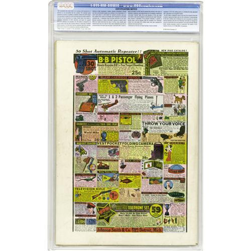 <B>Jungle Comics #1 (Fiction House, 1940) CGC VF 8.0 Off-white to white pages.</B></I> This long-running title was started off in grand fashion with the series' only Lou Fine cover! This was the only jungle series on the stands at the time, but it would run into lots and lots of competition just a few years in the future. The issue's got the origin and first appearance of Kaanga, who had the lead feature in all 163 issues of this series (though we were confused to see that Kaanga has the umlaut on the <I>first</B></I> A of his name here, somehow that got switched to the <I>second</B></I> A shortly thereafter!). Also making their first appearances were Camilla, Queen of the Lost Empire; Wambi the Jungle Boy; Tabu, Wizard of the Jungle (complete with origin); and Captain Terry Thunder and the Congo Lancers, all of whom were in <I>almost</B></I> every issue of this title's run. Overstreet 2006 VF 8.0 value = $3,185. CGC census 9/06: 1 in 8.0, 2 higher.<BR><BR><b>Shipping:</b> Slabbed Comic (<a target="_blank" href="http://www.heritageauctions.com/common/shipping.php">view shipping information</a>)