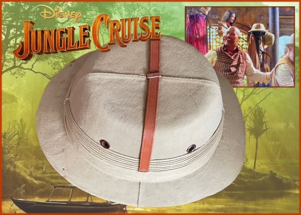 Original safari hat used in the Jaume Collet-Serra directed fantasy adventure film 'Jungle Cruise' (2021), based on Walt Disney's eponymous theme park attraction. The film tells the alternate history of the captain of a small riverboat who takes a scientist and her brother through a jungle in search of the Tree of Life while competing against a German expedition, and cursed conquistadors.