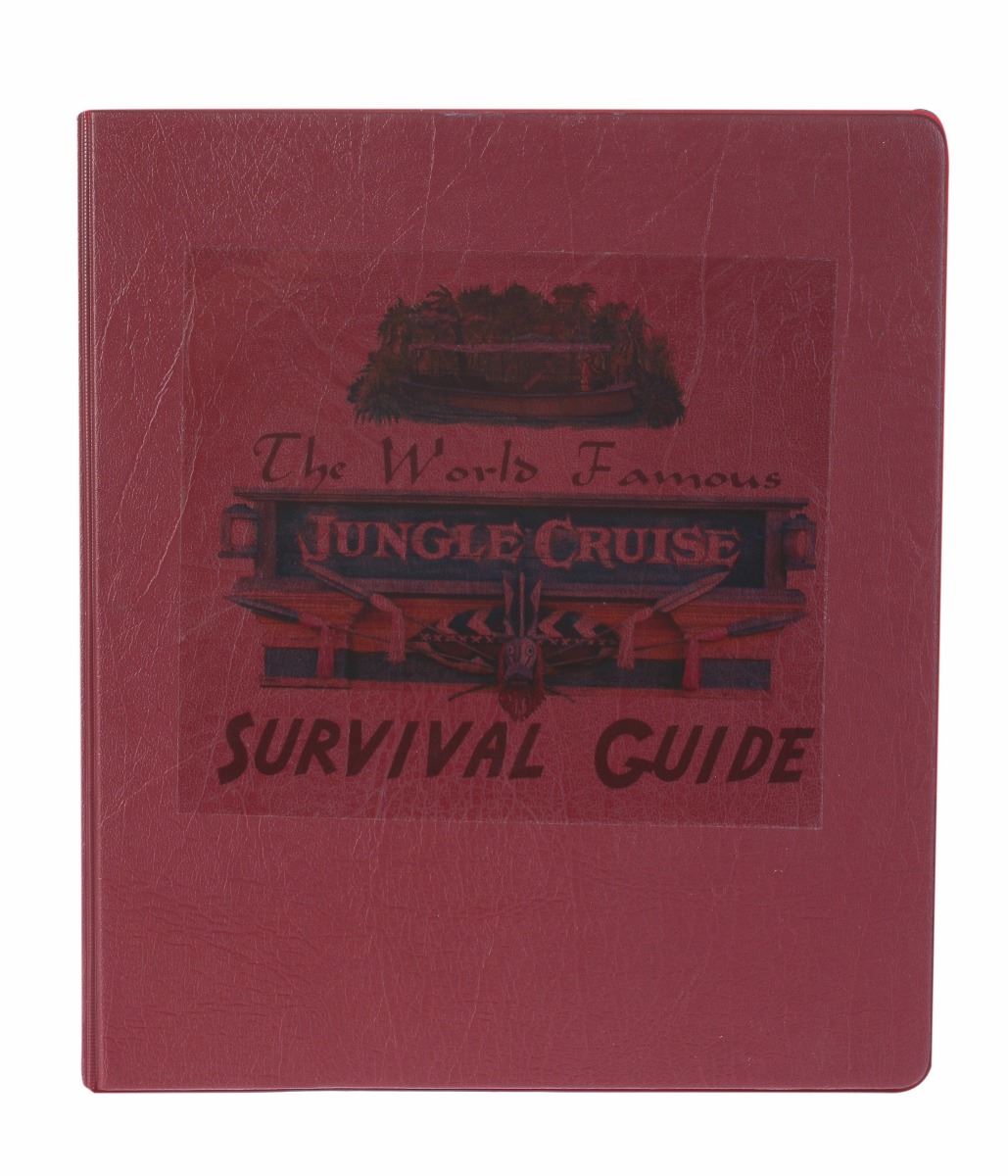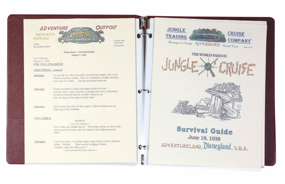 (Disneyland, 1994) One of only two known "master manuals" for the "Jungle Cruise" attraction. This manual compiles all the initial instructions for cast members including suggested dialog, information on the animatronic animals, and diagrams of the boat-house. Binder measures 11.5"x10". 76 pages. In very good condition.