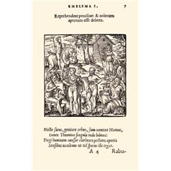 Contains 58 woodcut emblems, foreword written by Joannes Sambucus, a friend of the author. In worn contemporary calf.