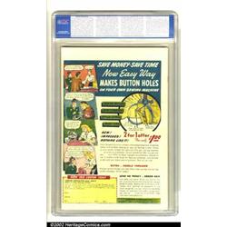 Junior #11 (Fox Features Syndicate, 1948) CGC NM+ 9.6 Off-white to white pages. Al Feldstein created a memorable cover for this "good girl" classic. Overstreet says that this entire run has headlight covers, I guess you can decide for yourself if this one does. The image is a classic 1940s beauty, with her high boots, short skirt and mittens. Al Feldstein is also responsible for the interior artwork inside this fantastic Golden Age comic. This high quality book is the very nicest copy that CGC has graded so far, and it will be difficult to surpass. Overstreet 2002 NM 9.4 value = $750. Important notice: We expect to be auctioning lots at the rate of 200-250 per hour. Sometimes eBay Premier live bid software cannot keep up with that pace, so we strongly recommend that you place a realistic proxy bid now as insurance to avoid disappointment. Also please note that all Heritage/CAA lots purchased through eBay Premier carry a 20% Buyer's Premium.
