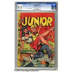 <B>Junior #14 (Fox Features Syndicate, 1948) CGC VF+ 8.5 Off-white to white pages.</B></I> Every single issue of this title's run featured an Al Feldstein "headlight" cover, and every single issue sells for far above the Guide's prices. We think we see a connection... but we'll stare at the cover for a few more minutes just to make sure. There's more of the same inside the book, as the interior art is also by Feldstein. This is the highest grade that CGC has assigned for this issue to date. Overstreet 2004 VF 8.0 value = $469; VF/NM 9.0 value = $705. CGC census 12/04: 2 in 8.5, none higher.