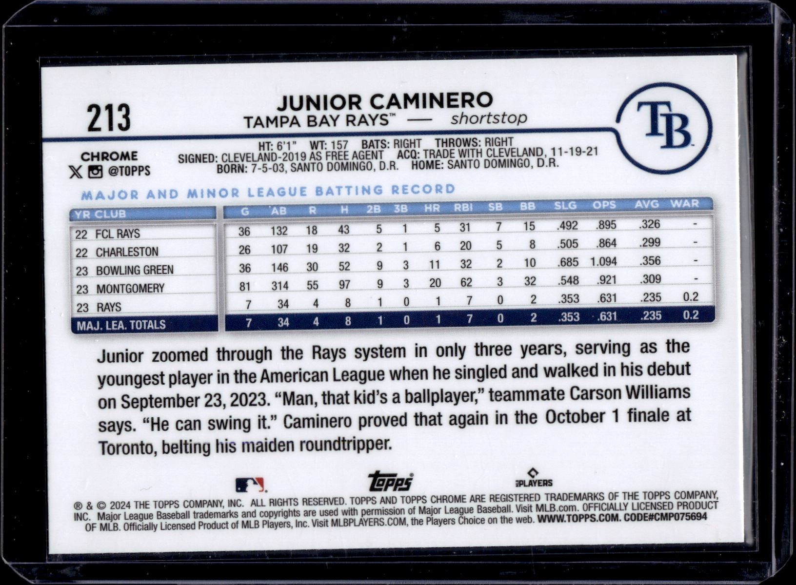 Junior Caminero RC 2024 Topps Chrome #213
