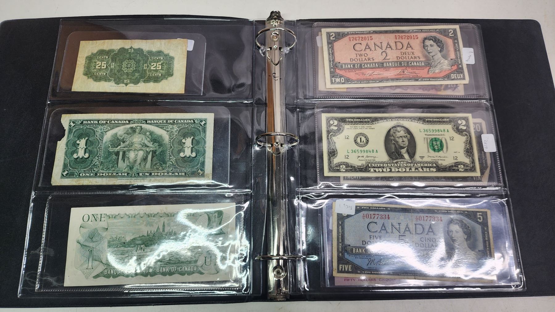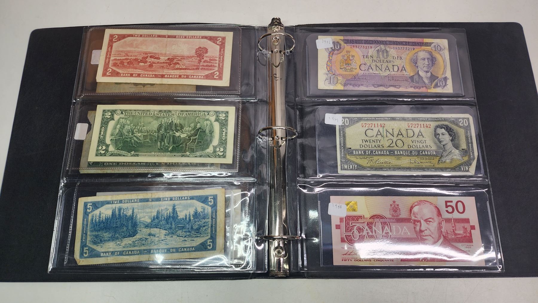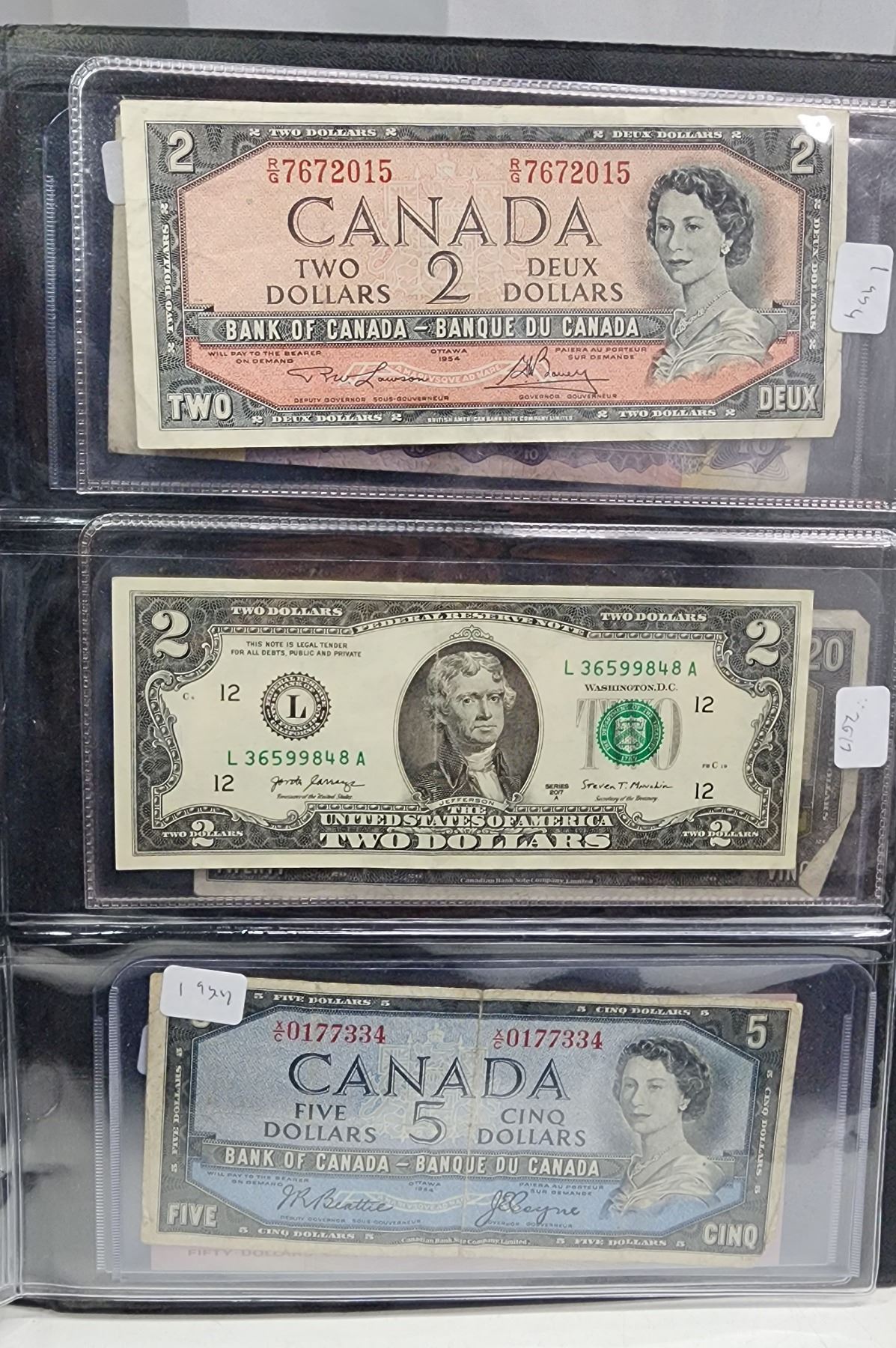 Junior Collection of 9 Canadian & US bills - assorted years - Shinplaster, 1, 2, 2 dollar US, 5, 10, 20 & 50 dollar bills