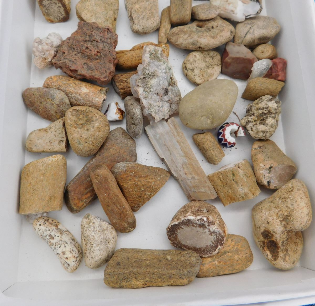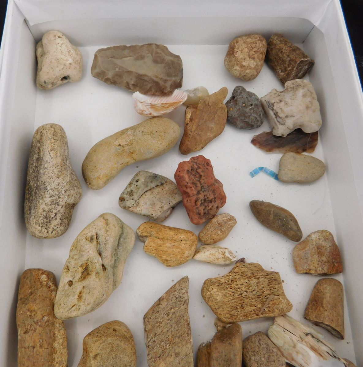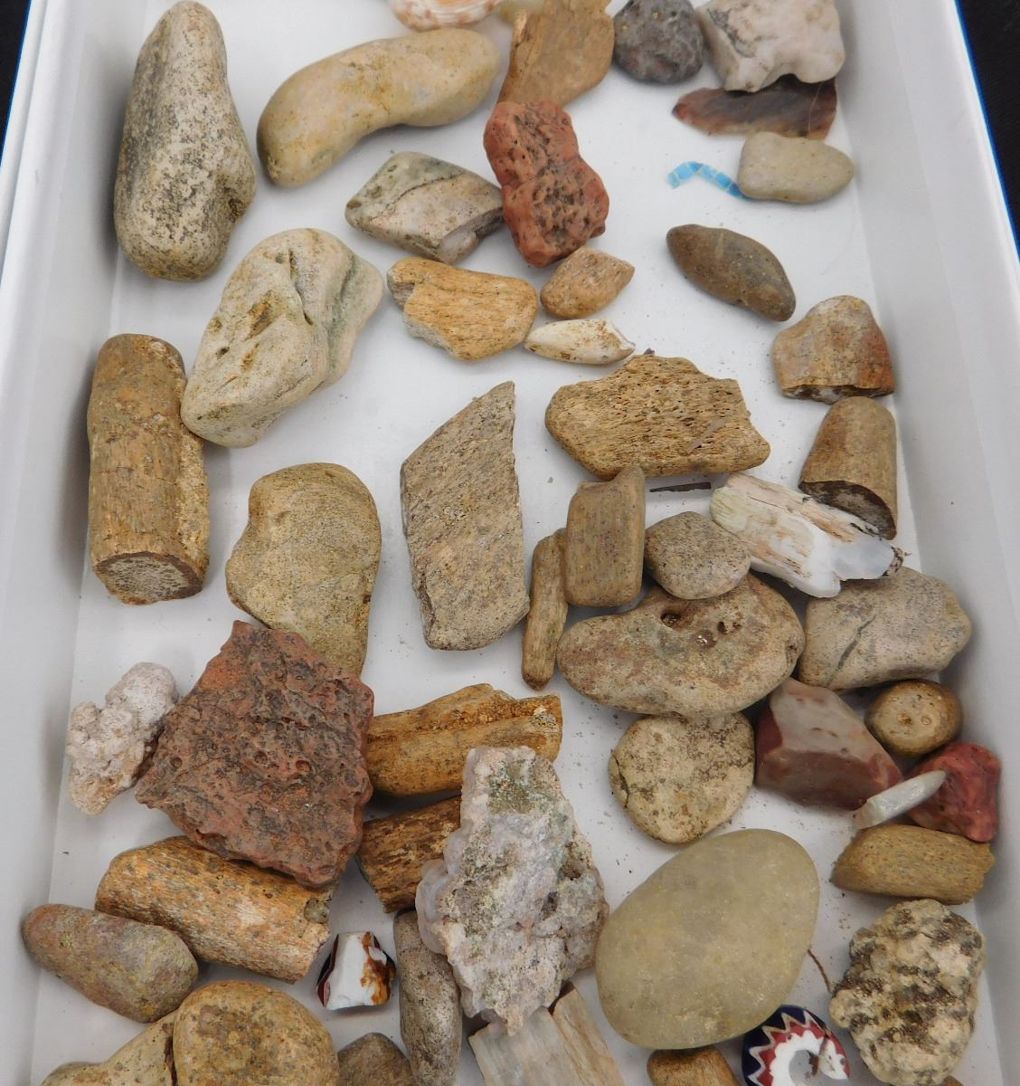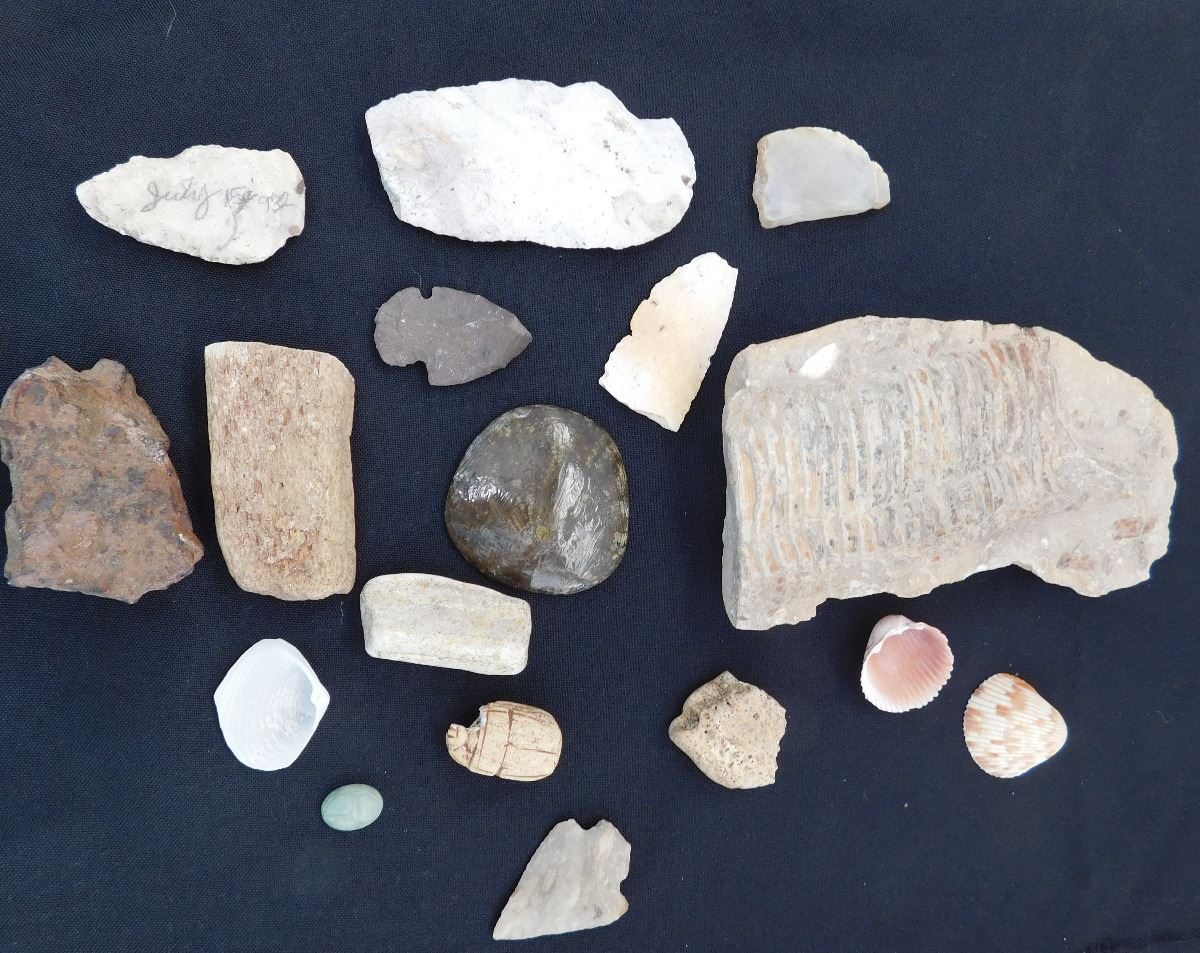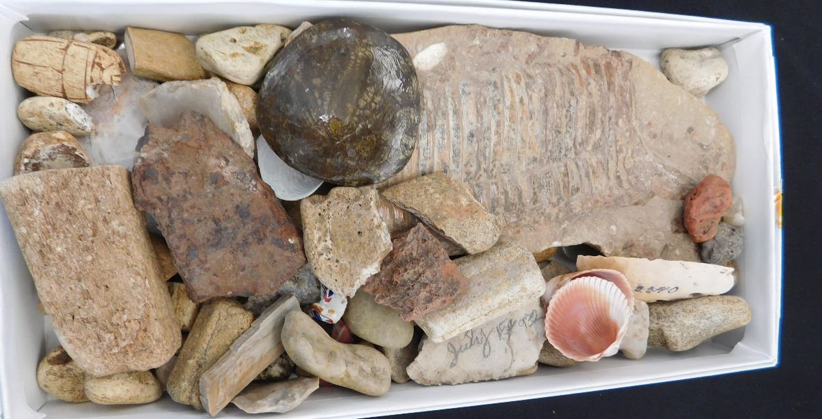 Fossil and meteor collection larges item is 3x6 inches. Most are damaged and found in Western U.S.A. You will find iron, nickel, chert, steatite and sandstone. In the box are fossils, arrowheads, carvings and a meteor. Shipping: $24.00