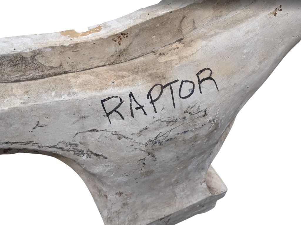 This is the original mold used to make a raptor made for Stopmotion tests in pre-production for the Steven Spielberg directed science fiction adventure film 'Jurassic Park' (1993) where. during a preview tour, a theme park suffers a major power breakdown that allows its cloned dinosaur exhibits to run amok.