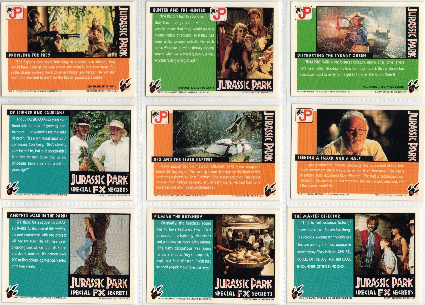 Jurassic Park 1993 Topps Trading Cards - 11 Unique Cards