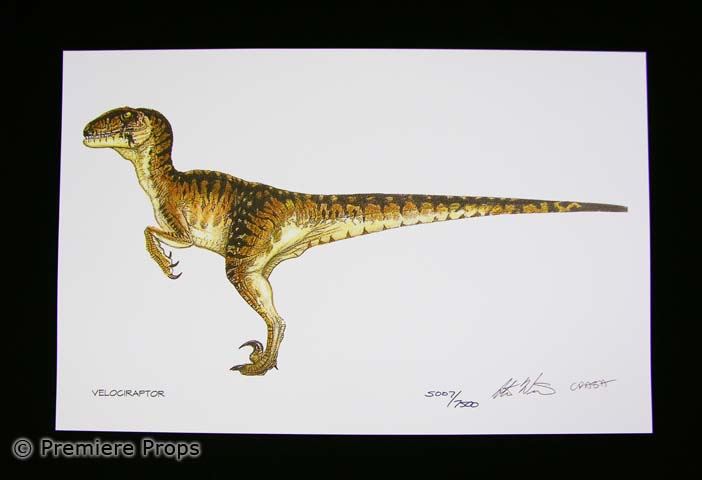 Jurassic Park limited edition boxed set of nine offset lithographic prints of the Jurassic Park dinosaurs, including: Dilophosaurus, Baby Triceratops, Adult Triceratops, Brachiosaurus, Parasaurolophus, Dilophosaurus (detail), Gallimimus, Velociraptor, and Tyrannosuarus Rex. Each print has been plate signed by Crash McCreery and Stan Winston. Numbered out of 7500 (Prints are ~ 17" x 11" Case is ~ 21.5" x 15.5"