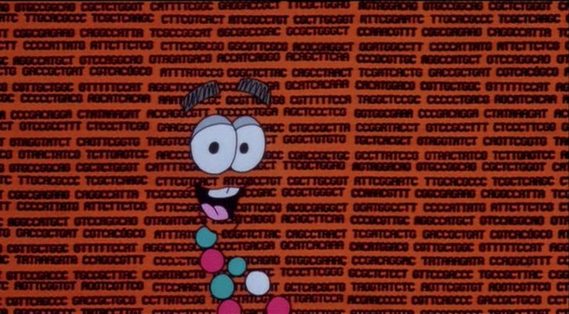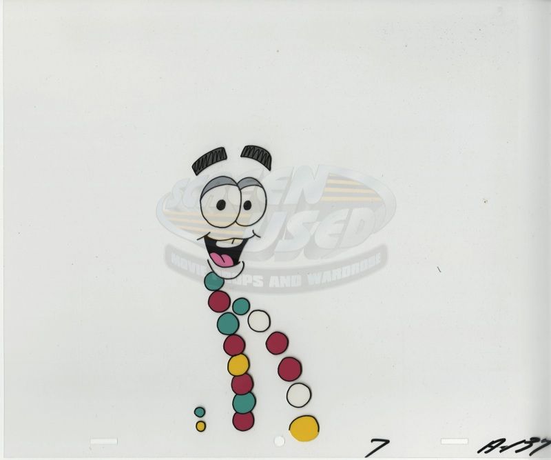 (Universal, 1993) This is a hand painted cel of Mr. DNA with no background, used in the cartoon played for the visitors of Jurassic Park. Color paint on Mylar, 12.5" x 10.5".