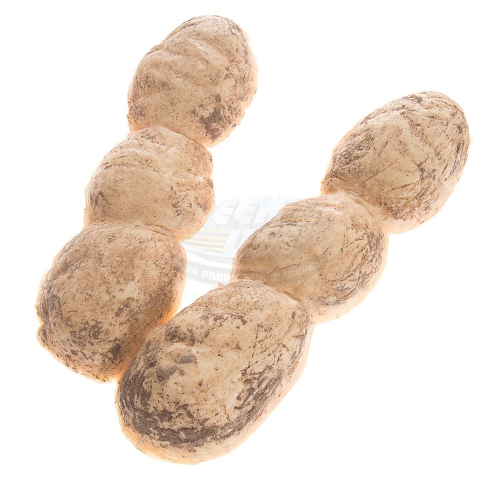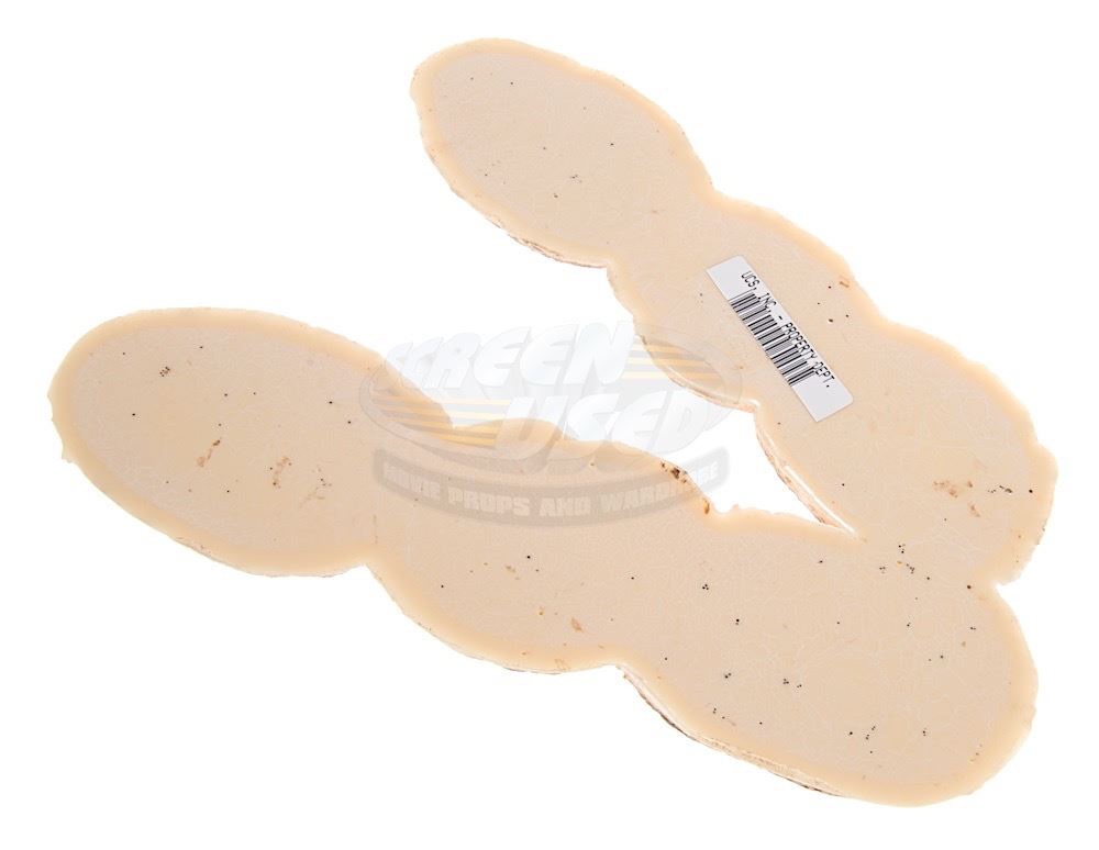 (Universal Pictures, 1993) This footprint marker was custom-made by the production to simulate the on-set footprints of the Velociraptor. Made of solid resin the marker has some dried mud remaining from use and a Universal inventory barcode sticker applied to the back. Measures 9.25" x 7" x 1.25".