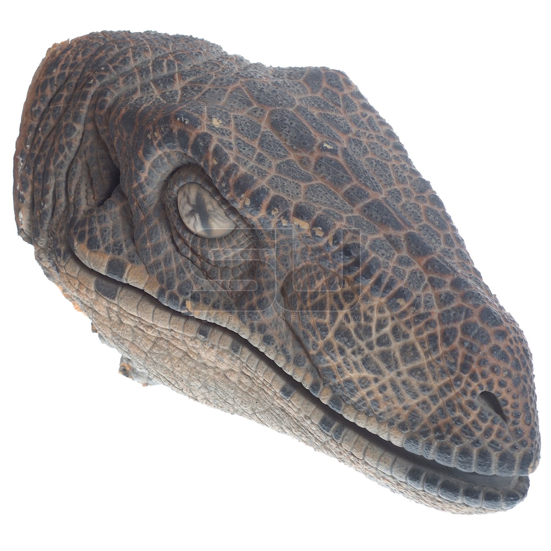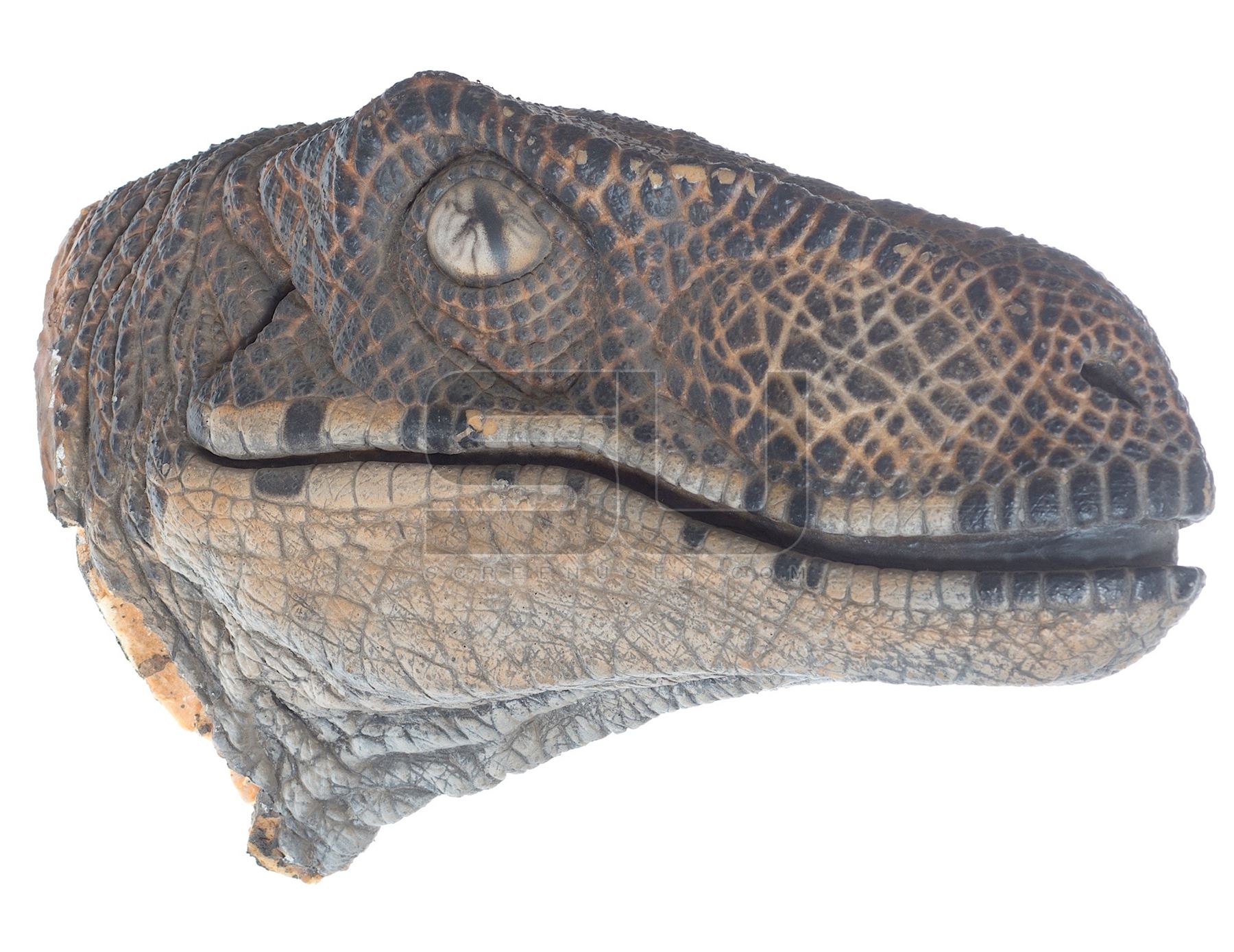 This Velociraptor head was created by Stan Winston Studios in the early stages of the production as paint test example to be approved. The head measures approximately 20" long x 9" wide x 12" tall and is made of biscuit foam with a thin flexible shell on the outside.