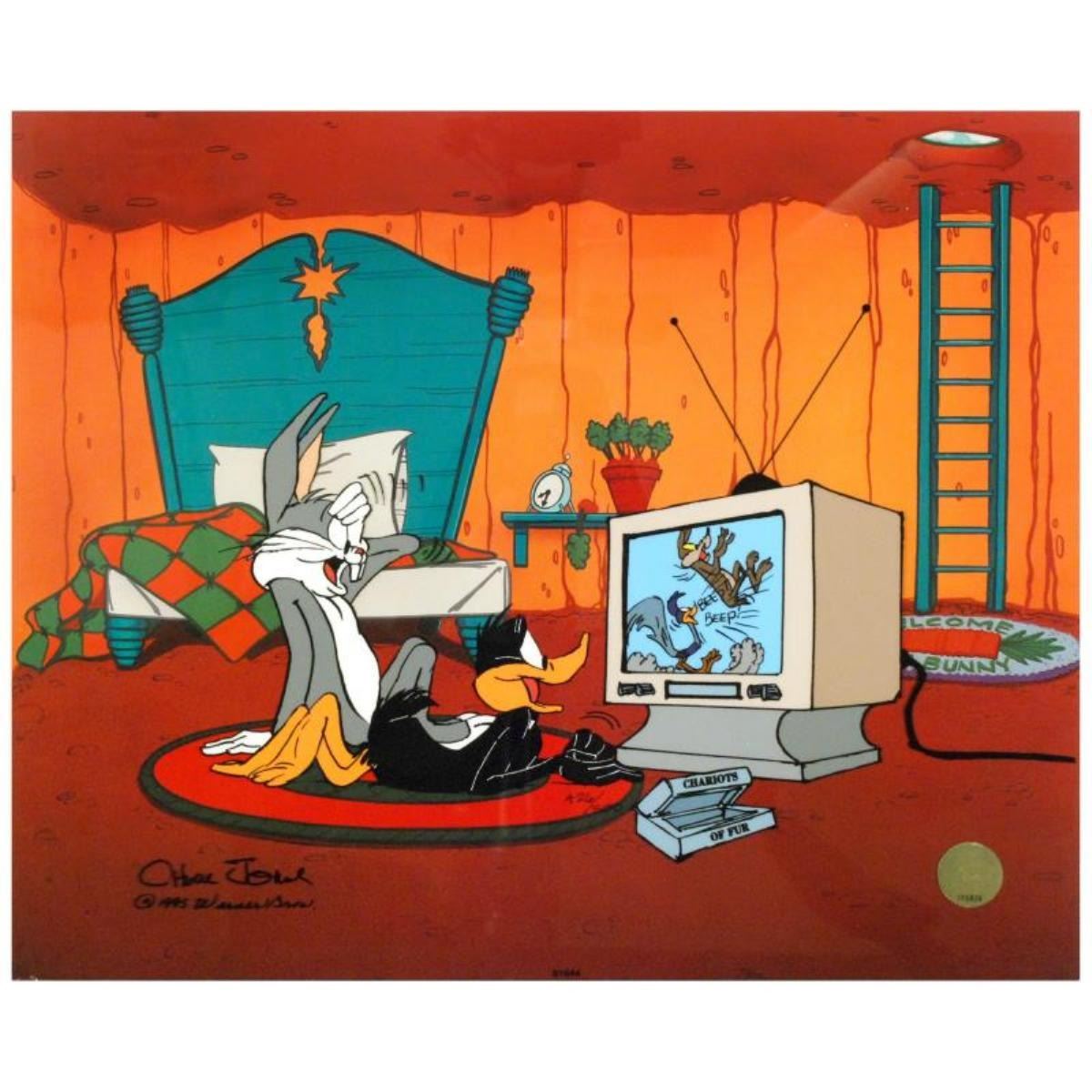 Just Fur Laughs by Chuck Jones (1912-2002). Own this amazing piece based on the original line image hand drawn and hand-inked on paper by Mr. Jones! "Just Fur Laughs" is a sold out limited edition animation cel with hand painted coloring on sericel outline, numbered and hand signed by Chuck Jones (1912-2002). Includes Certificate of Authenticity! Measures Approx: 16.5" x 13.5".
