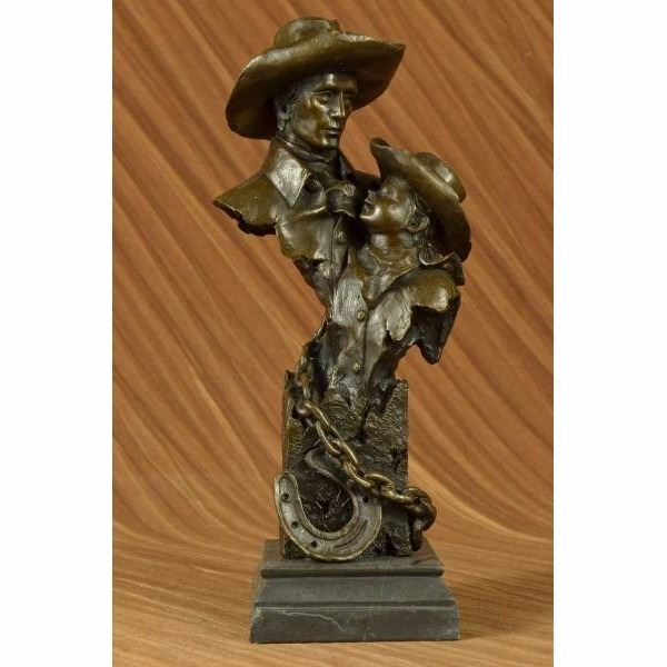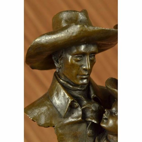 "Just Like Papa" by Renown Artist Milo,Sculpture features a Brown patina on the richly Marble base,and signed by artist Miloâ€. Our unique Hot cast process enables us to successfully reproduce a rich-looking bronze sculpture, enabling us to capture the life and realism of the western way of living. Each piece has been precisely cast and hand painted with careful attention to applied patinas, bringing life-like touches to this fine creation. Condition: This sculpture is in perfect condition. Bronze Dimensions with Marble Base:Height 13" x Width 6" Marble Dimensions: 4.5" X 4" Height without base: 12" Weight : 10 LBS Inventory : 24YRD12045342