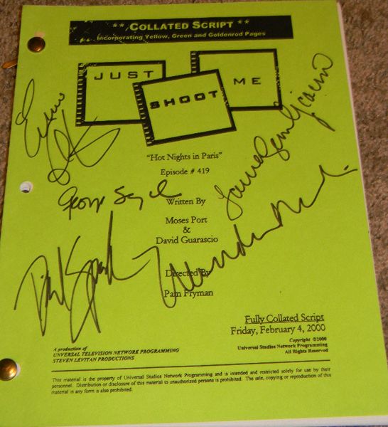 Original shooting script signed on the front by the entire cast including David Spade, George Segal, Laura San Giacomo, Wendy Malick, and Enrico Collasanto. This item comes with a certificate of authenticity good for the life of the piece.