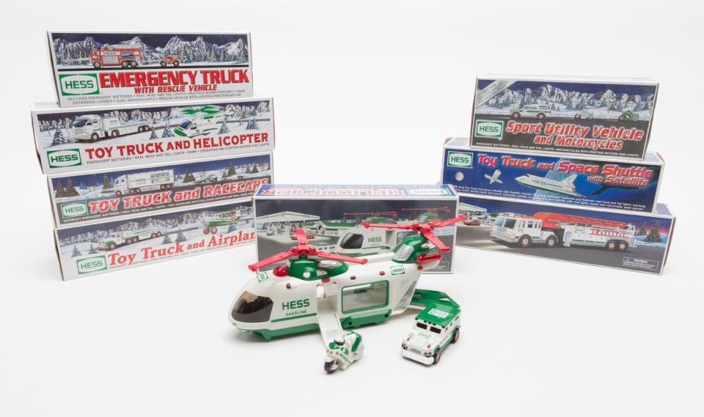 Just in time for the holidays; a lot of high end Hess toy trucks in their factory boxes including an Emergency Truck with Rescue vehicle; an SUV with Motorcycles; a Truck and Space Shuttle with Satellite; a Fire Truck; a Truck and Helicopter; a Truck and Race cars; a Truck and Airplane and a Helicopter with motorcycle and cruiser. These toys use Energizer batteries and depending on the model, have sound and flashers that operate by buttons on each vehicle as described in each toy’s instructions. (WARNING: Kids, keep away from dad unless he promises to supply you with plenty of extra batteries after he wears out the initial set “showing you” how the toys work! Est.: $200-$400.