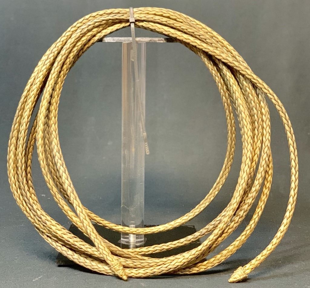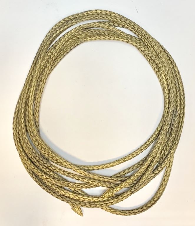 Original and iconic golden lasso of truth used by "Wonder Woman", played by Gal Gadot in the superhero film "Justice League" (2017) where, fueled by his restored faith in humanity and inspired by Superman's selfless act, Bruce Wayne enlists the help of his new-found ally, Diana Prince, to face an even greater enemy. The film is directed by Zack Snyder, written by Chris Terrio and Joss Whedon, and features an ensemble cast that includes Ben Affleck, Henry Cavill, Gal Gadot, Ezra Miller, Jason Momoa, Ray Fisher, Amy Adams, Jeremy Irons, Diane Lane, Connie Nielsen, and J. K. Simmons. In the film, Batman and Wonder Woman recruit The Flash, Aquaman, and Cyborg after Superman's death to save the world from the catastrophic threat of Steppenwolf and his army of Parademons.