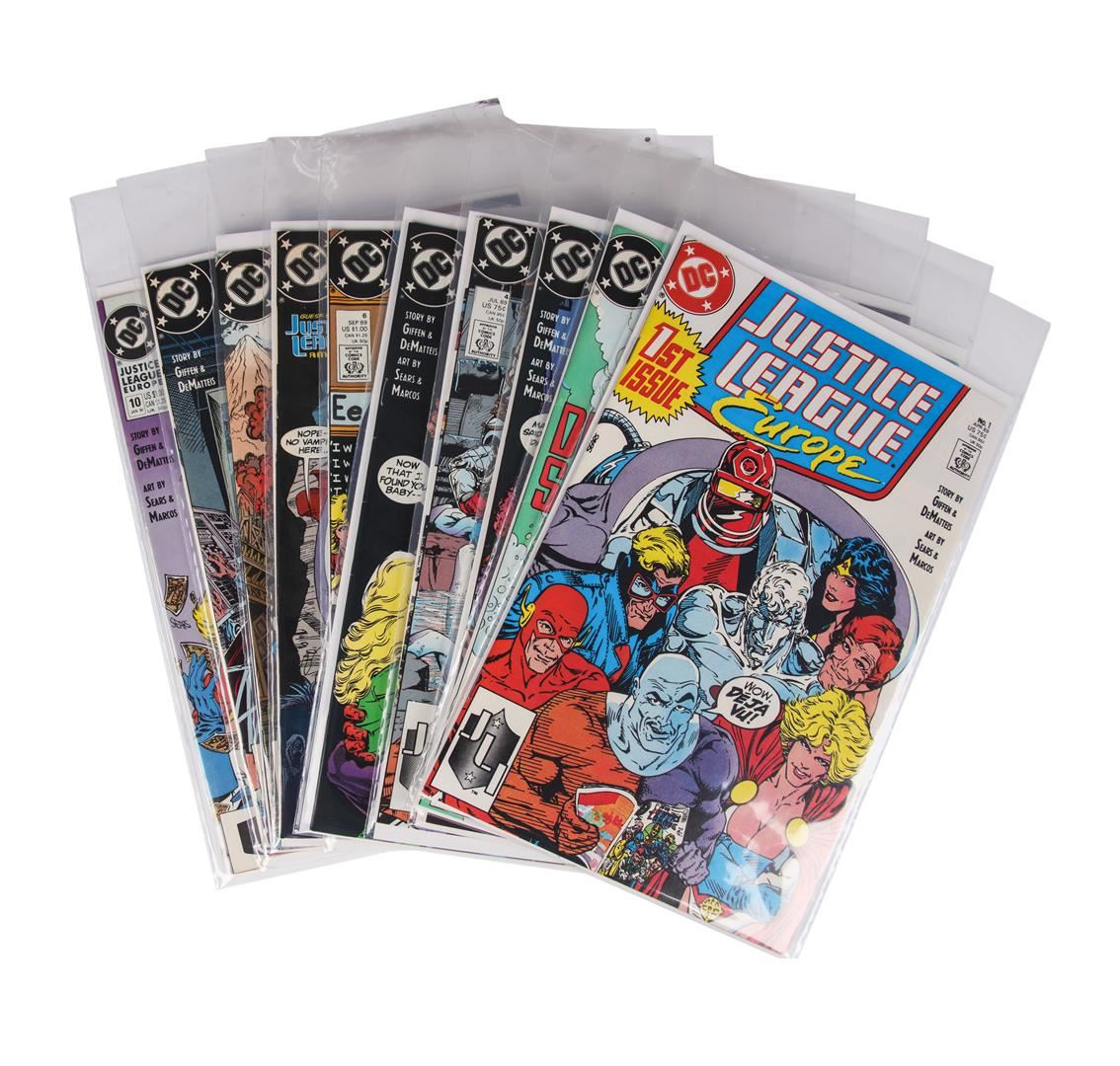 One set of Justic League Europe comic books, containing issues #1-24 from April 1989 - March 1991 and the 1990 Annual issue.