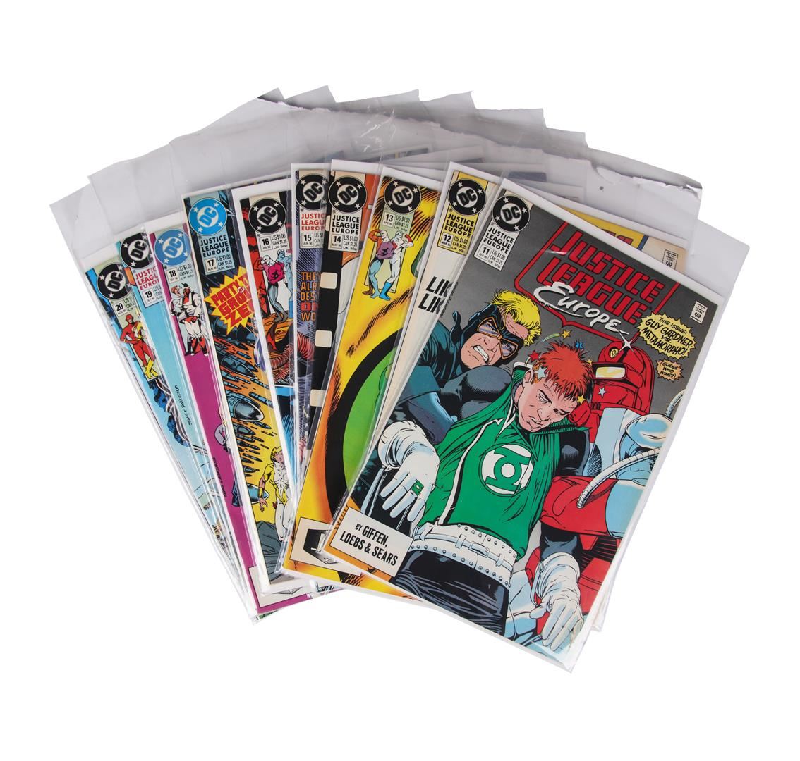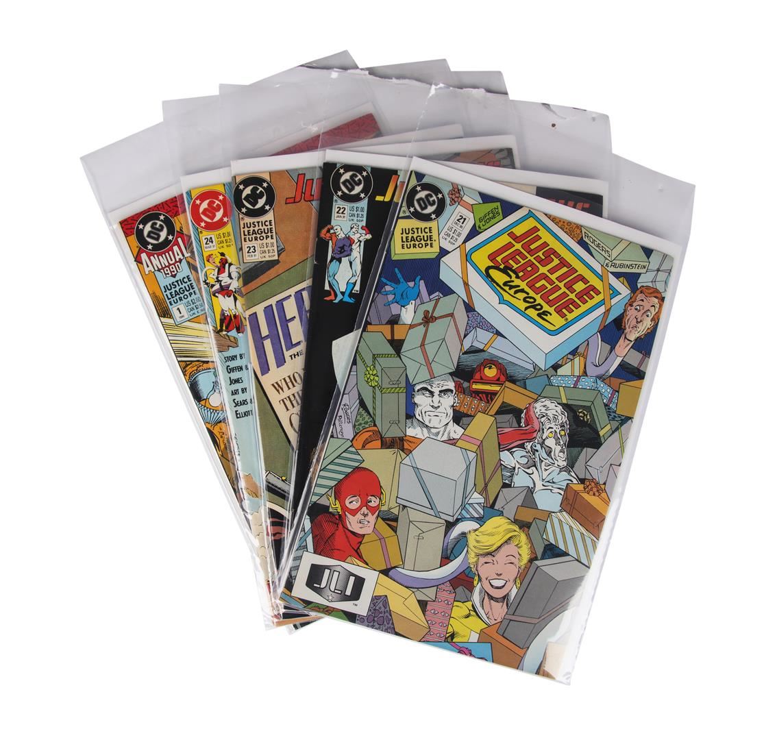 One set of Justic League Europe comic books, containing issues #1-24 from April 1989 - March 1991 and the 1990 Annual issue.
