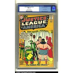 Justice League of America #7 (DC, 1961) CGC NM 9.4 Off-white to white pages. The entire Justice League team is featured on this crazy cover by Murphy Anderson. This amazing book has been given a straight Near Mint grade by CGC, and is the last ten cent cover price issue. DCs from this time period are very difficult to find in VF or above, and this copy has remained very well preserved, with excellent page quality. First appearance of Professor Amos Fortune. Overstreet 2002 NM 9.4 value = $350. Important notice: We expect to be auctioning lots at the rate of 200-250 per hour. Sometimes eBay Premier live bid software cannot keep up with that pace, so we strongly recommend that you place a realistic proxy bid now as insurance to avoid disappointment. Also please note that all Heritage/CAA lots purchased through eBay Premier carry a 20% Buyer's Premium.