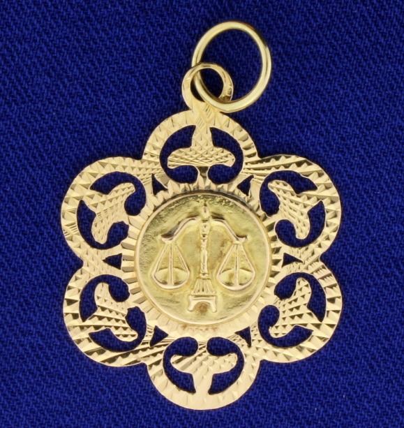 This pendant is 18K yellow gold, it is stamped 750. it has great detail and is 1 1/4 inch long. 3.2g